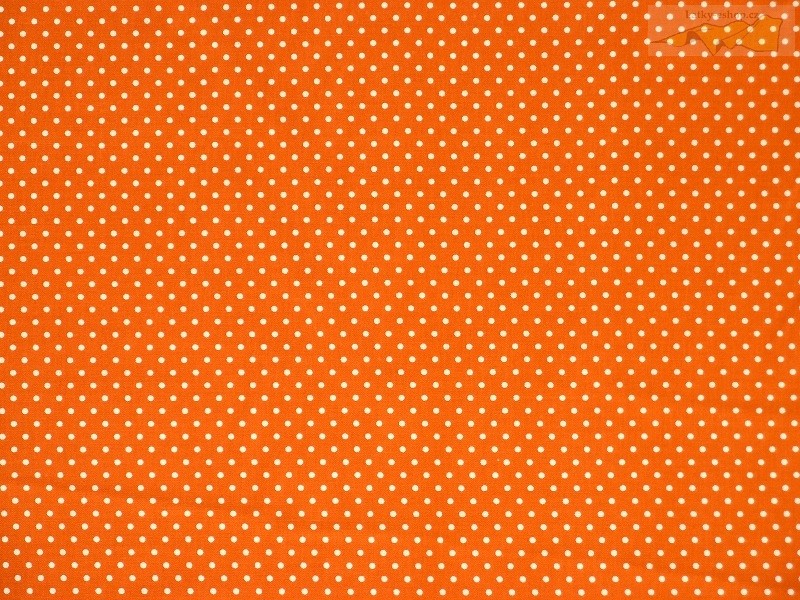 oranžová bavlněná látka bílý puntík