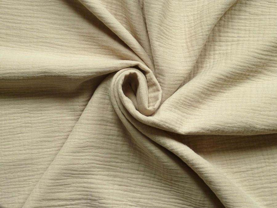 Hledáte materiál, který spojuje maximální komfort s nekonečnou jemností? Náš béžový mušelín, známý také jako dvojitá gázovina je díky své unikátní šířce 280 cm ideální volbou pro velké projekty bez kompromisů a zbytečných švů. Tvoří jej dvě vrstvy jemně tkané bavlny spojené neviditelnými stehy. Výsledkem je látka, která je neuvěřitelně prodyšná, měkká na dotek a s každým vypráním získává na ještě větší poddajnosti.