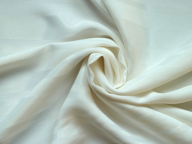 Tato bílá látka má vytkávané proužky, které mají mírný lesk. Proužky jsou tkané po délce. Materiál je vhodný na halenky, šaty, sukně, tuniky apod.