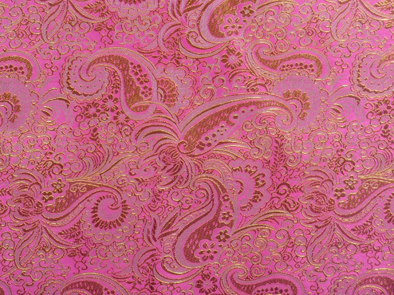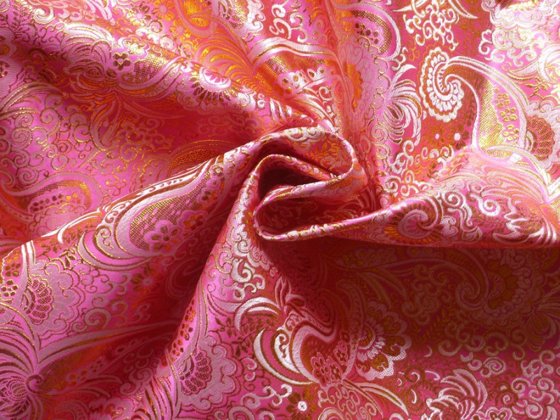 růžový brokát se zlatou výšivkou. používají se na společenské oděvy - saka, sukně apod., historické kostýmy a také se používají k dekoračním účelům. tento brokát má velmi jemný , atraktivní vzor.