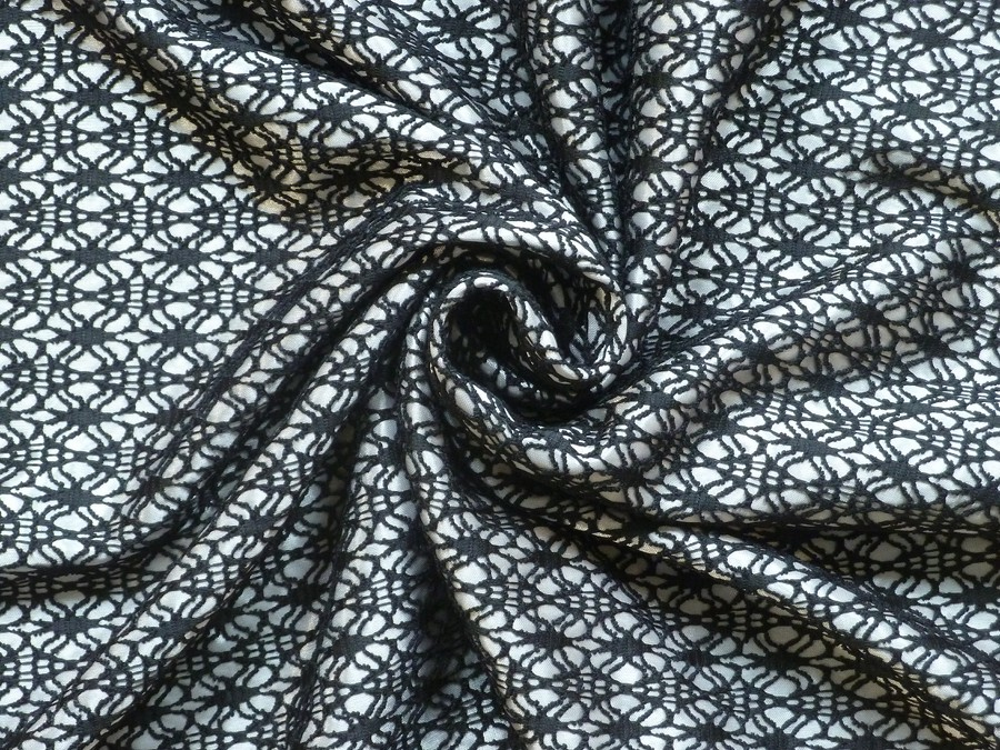 tato černá krajka je již podšitá elastickým saténem ve stříbrné barvě. z tohoto důvodu již není nutné podšívat. je možno použít na kostýmy, saka, sukně apod. látka je vhodná jak na společenské oděvy, tak i na denní nošení.