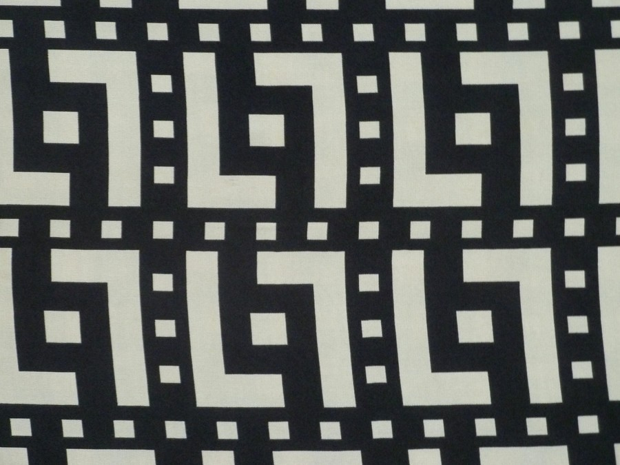 černé acetátové hedvábí 3323 s meandrovým vzorem
