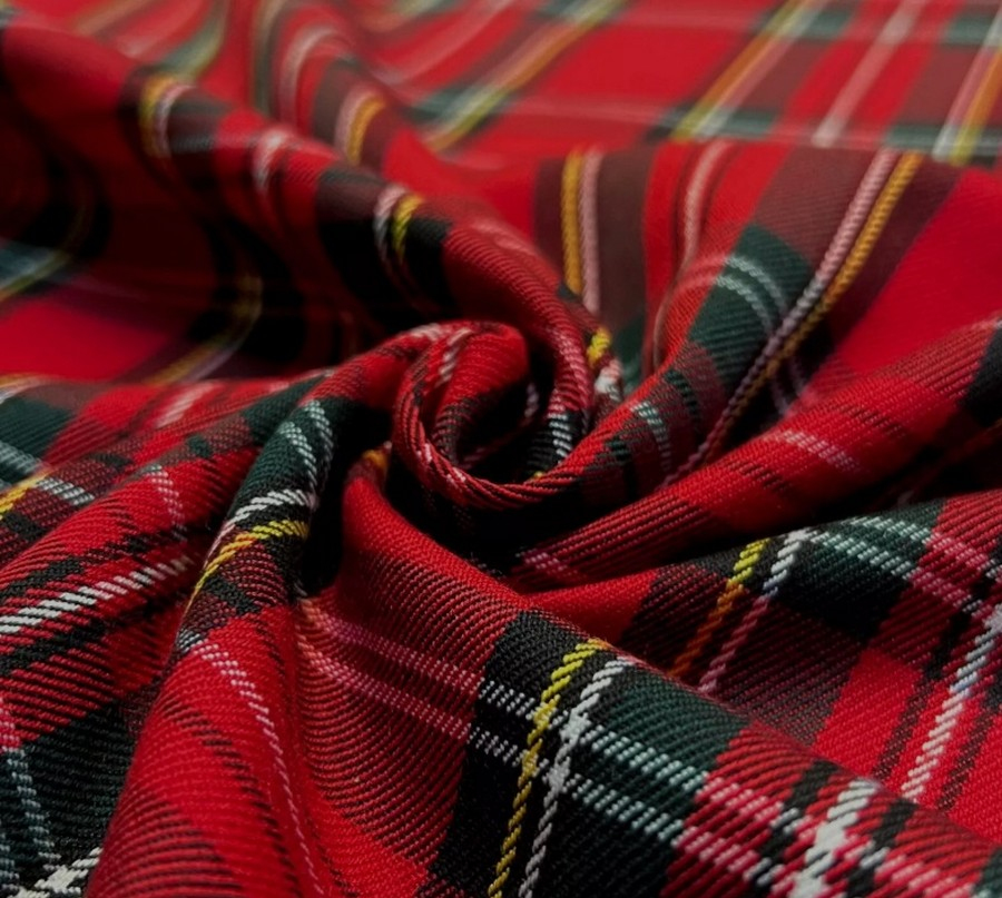 Tato červená kostkovaná látka má atraktivní kombinaci barev. Je splývavá a příjemná na nošení. Je vhodná na sukně, sáčka, kostýmy a šaty či jiné designové kousky.
