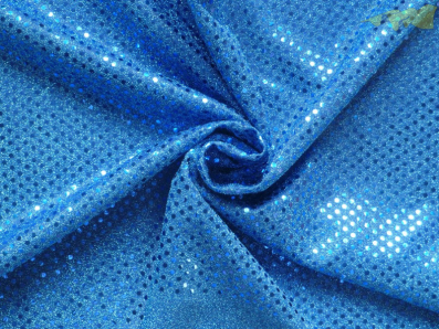 Tato signálně zelená látka má flitry lepené na úpletu. Používá se ke společenským účelům na šaty, sukně, halenky, kostýmy apod.