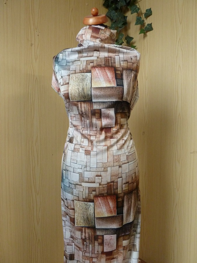 Vzhledem k výraznému vzoru tato látka nejlépe vynikne na střihově jednoduchých modelech, kde může naplno promluvit samotný tisk: