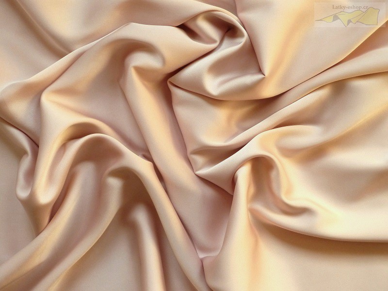 toto pudrové hedvábí je vyráběné z umělého hedvábného vlákna s podílem elastanu. je lehké a splývavé. patří mezi luxusní materiály. je vhodné na halenky, šaty, sukně, tuniky apod.
