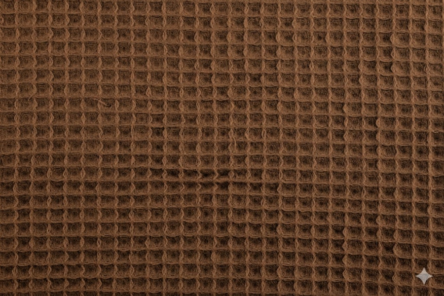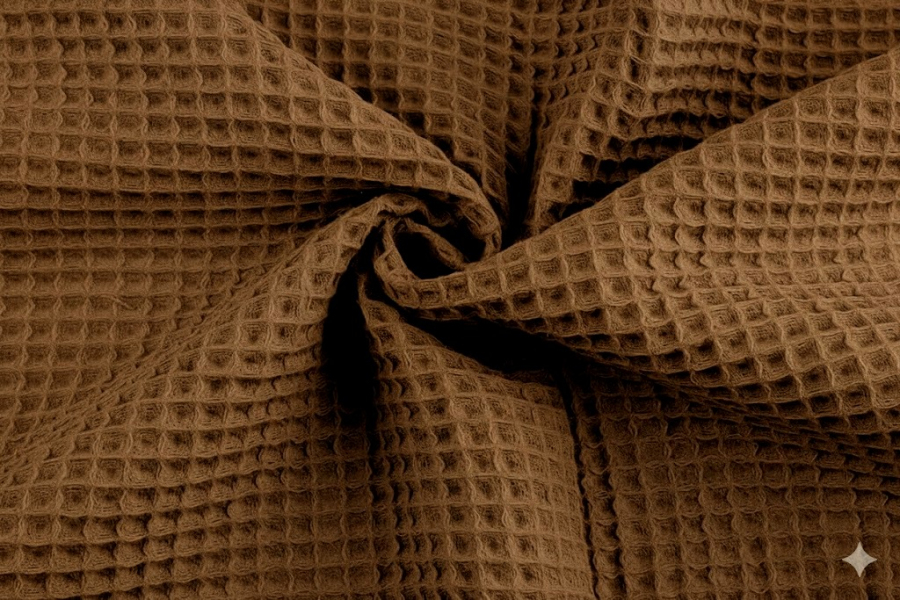 Naše měkká a poddajná hnědá bavlněná vaflovina je přesně tou látkou, která dodá vašim projektům šmrnc a profesionální vzhled. Vaflovina je nesmírně univerzální látka. Můžete z vyrobit stylové ručníky, osušky nebo luxusní župany jako z wellness centra. Lehké dečky, zavinovačky pro miminka. Vysoce funkční utěrky a chňapky, nebo domácí komplety, kraťasy nebo lehké mikiny, které nemusíte žehlit.