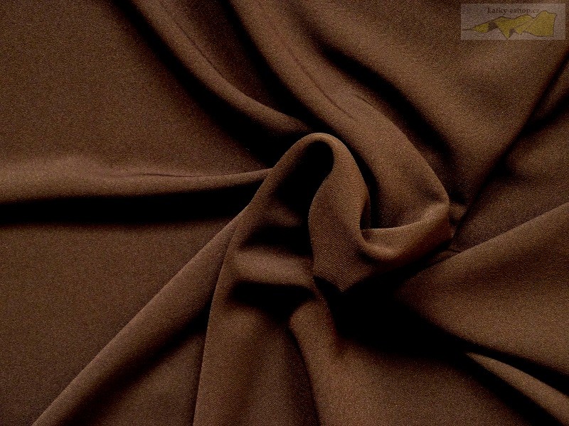 tato tmavě hnědá látka je vhodná na kostýmy, saka, sukně apod. je nemačkavá, snadná údržba. Možno použít i na menší společenské účely.