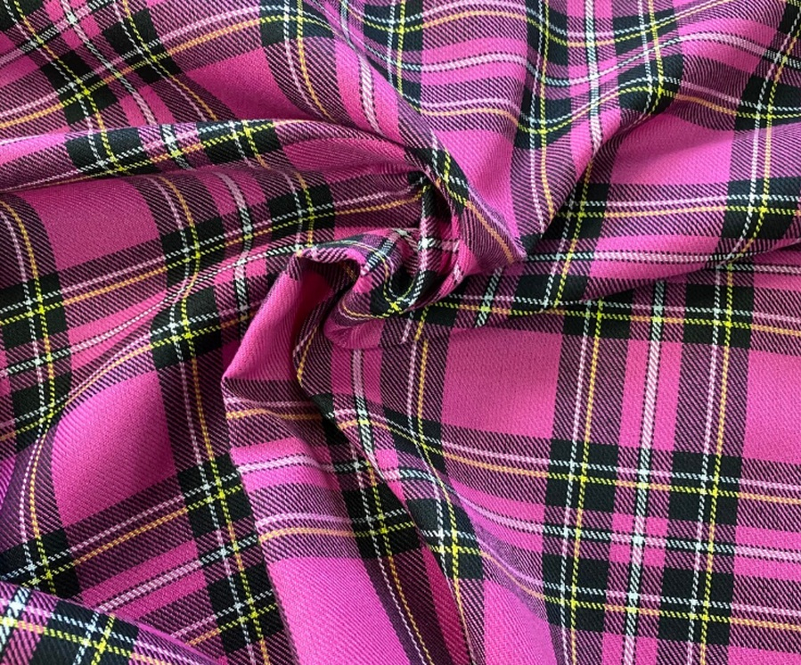 Tato růžová kostkovaná kostýmová látka se používá na výrobu svrchního oblečení. Šijí se z ní saka, sukně, šaty, kostýmy, skládané sukně apod.