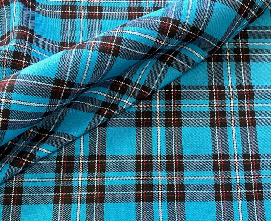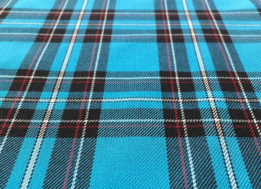 tato tyrkysová kostkovaná látka se používá na výrobu svrchního oblečení. šijí se z ní saka, sukně, šaty, kostýmy, skládané sukně apod.
