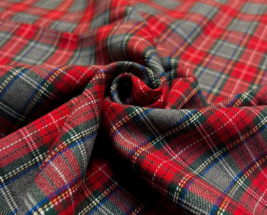 Tato kostýmovka má červeno šedý kostkovaný vzor. Má atraktivní kombinaci barev. Je splývavá a příjemná na nošení. Je vhodná na sukně, sáčka, kostýmy a šaty či jiné designové kousky.