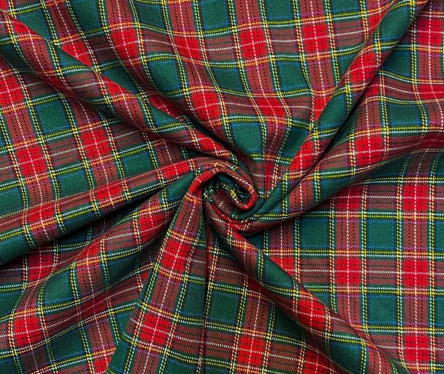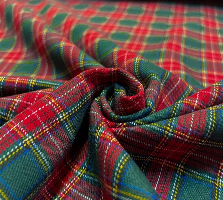 Tato kostýmovka má červeno zelený kostkovaný vzor. Má atraktivní kombinaci barev. Je splývavá a příjemná na nošení. Je vhodná na sukně, sáčka, kostýmy a šaty či jiné designové kousky.