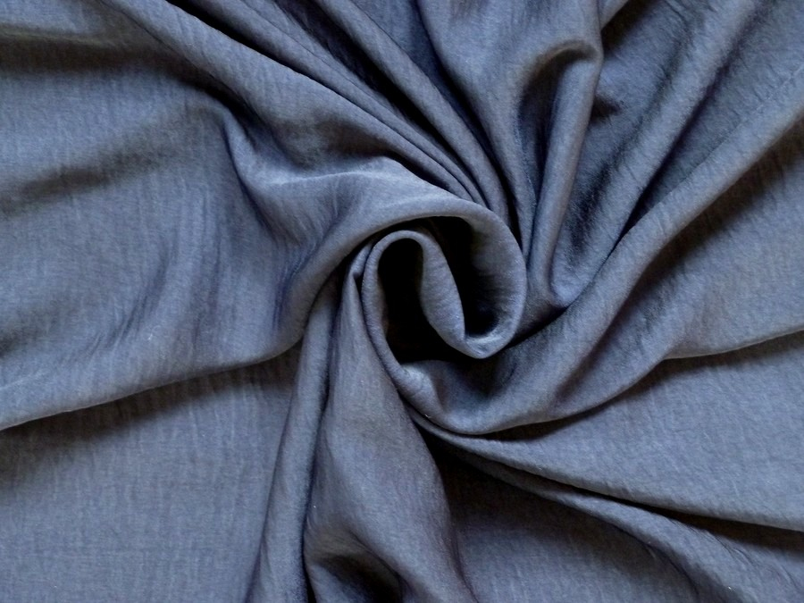 Tato tmavě modrá krešovaná látka je elegantní a luxusní materiál, který vizuálně a na dotek připomíná přírodní hedvábí, avšak s praktickými vlastnostmi acetátu. Tato látka se ideálně hodí na šití společenských šatů, sukní, halenek, luxusních košil.