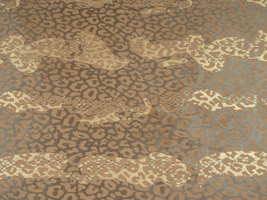 měděný elastický semiš se zvířecím motivem, který v sobě snoubí eleganci a výjimečné pohodlí. Přes základní leopardí vzor jsou naneseny nepravidelné, oblačné plochy s metalickým/zlatým tiskem. Tyto zlaté plochy mají uvnitř jemnější, šupinatý vzor, který může připomínat hadí kůži nebo strukturu krokodýla. Tato látka je ideální pro extravagantnější a stylové oděvy, jako jsou bundičky, saka, sukně, úzké šaty, kalhoty nebo pro luxusní akcenty na oděvech. Vhodná i na doplňky (kabelky, obuv) nebo dekorační účely (polštáře).
