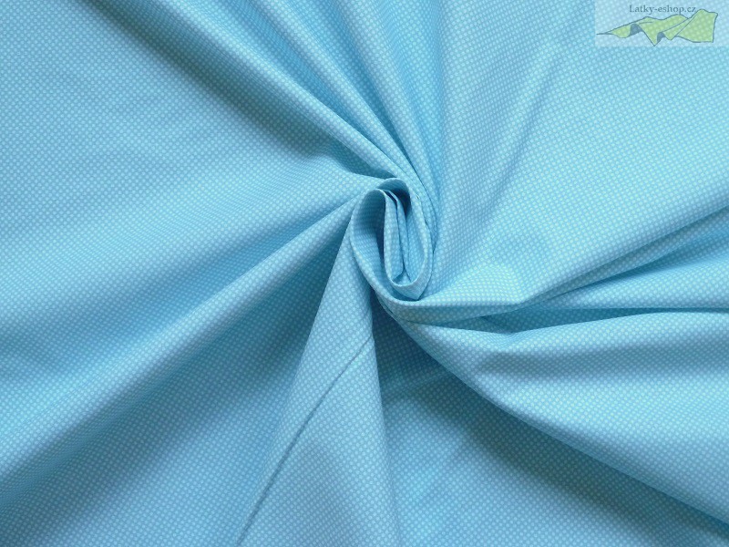 tato modrá bavlněná látka má jemný vzor puntíků. je v šíři 300 cm. je vhodná např. na povlečení, oděvy, závěsy apod.