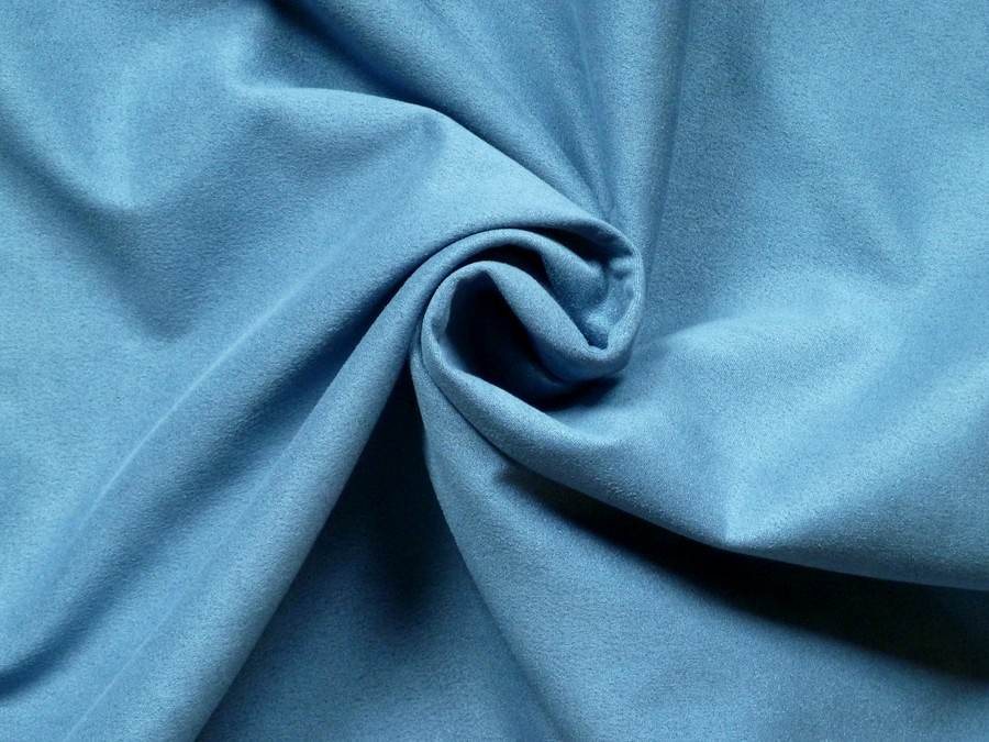 modrý elastický semiš, který v sobě snoubí eleganci a výjimečné pohodlí. Tato látka je ideální volbou pro ty, kteří hledají materiál s sametově jemným omakem a zároveň požadují vysokou míru flexibility. Je ideální pro zhotovení módního oblečení: Legíny, šaty, sukně, pouzdrové topy nebo přiléhavé bundičky a kabátky.