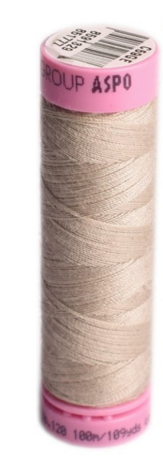 stříbrobéžová univerzální šicí nit pro domácnost. Vhodná pro šití všech druhů textilních materiálů z vláken přírodních, směsových i plně syntetických.