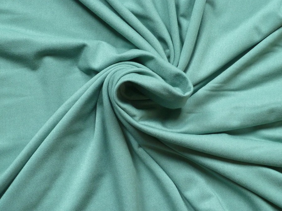 Tento pistáciový viskózový úplet s příměsí spandexu je definicí lehkosti a elegance. Díky vysokému podílu viskózy je látka přirozeně chladivá, prodyšná a má nádherný, jemně hedvábný lesk. Látka je krásně poddajná, pružná v obou směrech, netvoří tuhé záhyby a elegantně kopíruje postavu.Je vhodná na šaty, sukně, zavinovací topy, lehké kardigany, pyžama nebo dětské oblečení.