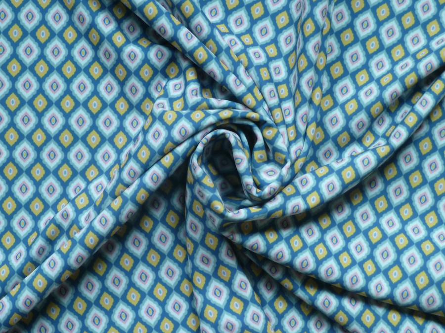 Tato plavkovina s geometrickým vzorem je ideální volbou pro každého, kdo hledá spojení vysoké funkčnosti a letního stylu. Díky vysokému podílu spandexu se látka dokonale přizpůsobí křivkám těla, aniž by omezovala v pohybu. Plavkovina se nevytahá a i po dlouhodobém nošení a namáčení si drží svůj původní tvar. Polyamidová vlákna neabsorbují tolik vlhkosti jako přírodní materiály, což zajišťuje rychlé schnutí na slunci i vánku. Materiál je odolný vůči působení chlóru a mořské soli, což prodlužuje životnost barev i samotného vlákna.