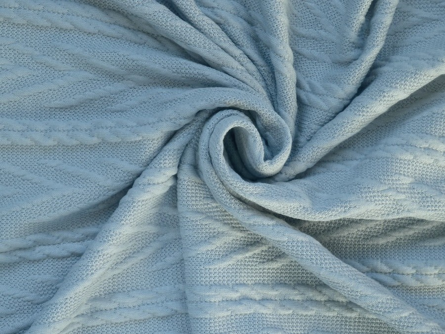 pletenina v bledě modré barvě 3332 s plastickým vzorem