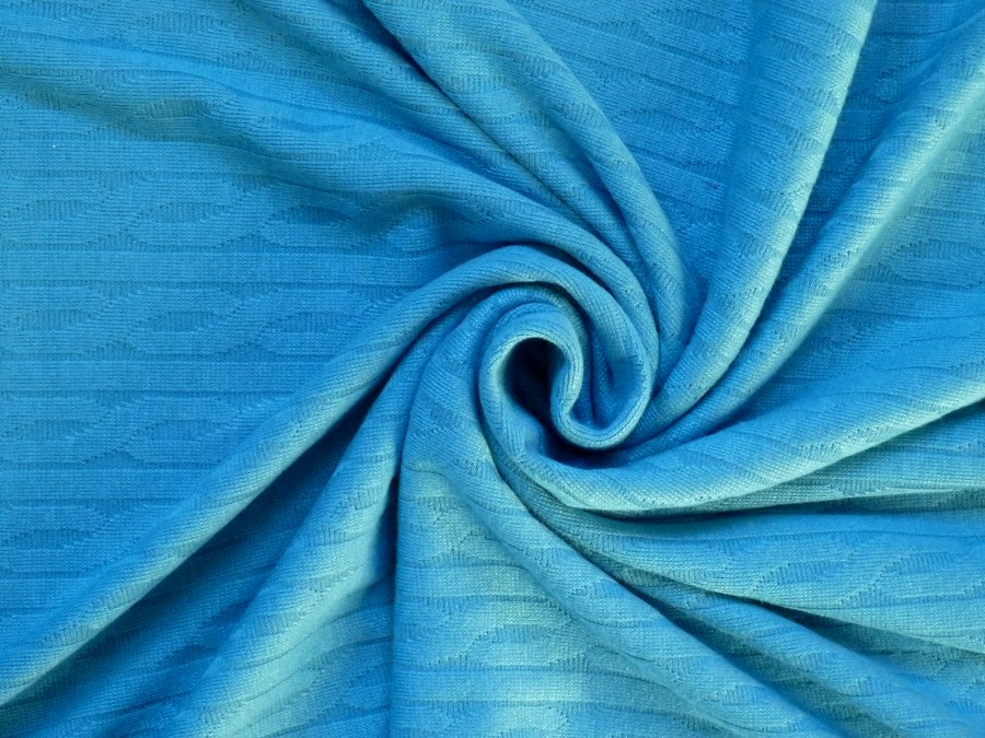 pletenina v modré barvě 3335 s copánkovým vzorem