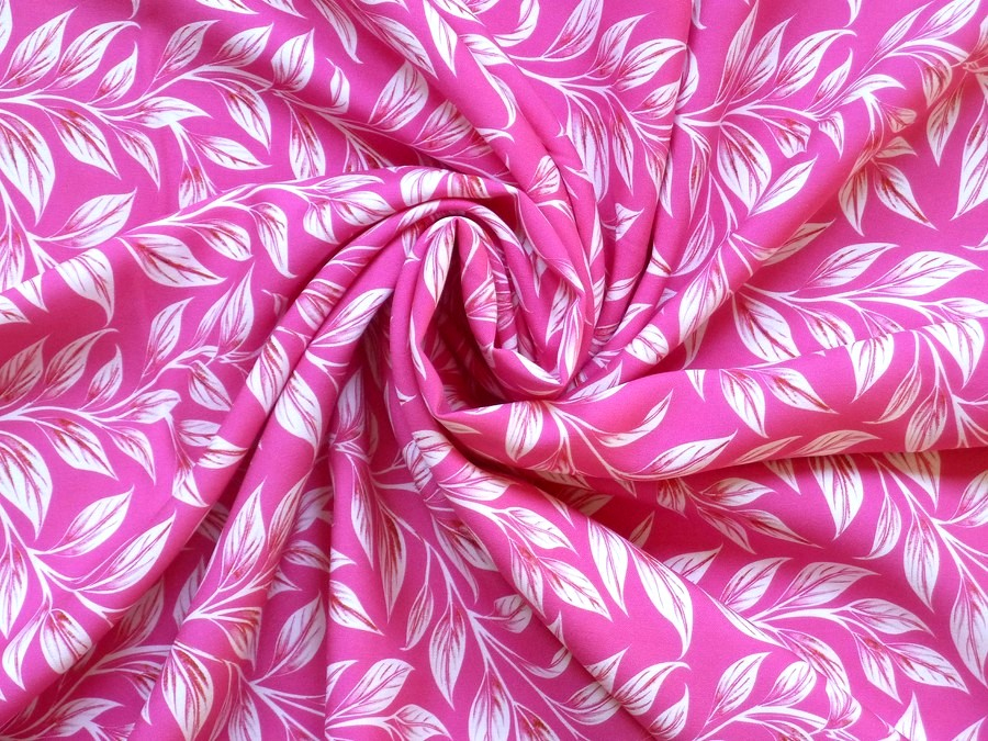 Tato purpurová viskózová šatovka s lístky vás okouzlí svou lehkostí, splývavostí a nádherným kontrastním vzorem bílých listů na sytém purpurovém podkladu. Ideální na lehké zavinovací šaty, vzdušné sukně, široké kalhoty typu "palazzo" nebo stylové halenky.