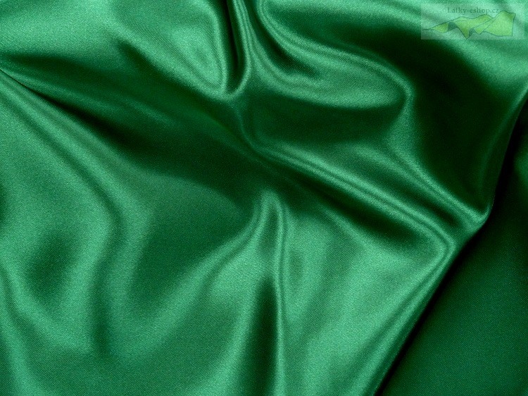 Velmi kvalitní lesklá látka - tmavě zelený satén příjemný na dotek a odolný proti mačkání vyrobený v EU s vyšší gramáží patří k nejprodávanějším látkám v našem rozsáhlém sortimentu. Využívá se k výrobě a zdobení společenských šatů, na obřady, na karneval a podobně.