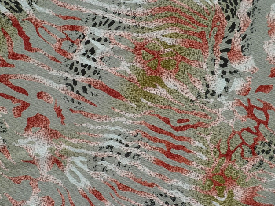 Tato šedohnědá viskózová šatovka zaujme na první pohled svým divokým, a přesto sofistikovaným designem, který kombinuje prvky zvířecích motivů s moderní abstrakcí. Je ideální volbou pro ty, kdo hledají materiál s charakterem a stylem.Celý vzor je zjemněn pointilistickým efektem (drobným tečkováním), který vytváří plynulé přechody a hloubku. Tato látka je díky svému výraznému vzoru předurčena k tomu, aby byla hvězdou outfitu. Skvěle z ní budou vypadat zavinovací šaty, lehké široké kalhoty (culottes) nebo palazzo kalhoty, vzdušné halenky a tuniky, které oživí i jednoduché džín, či stylová kimona přes plavky.