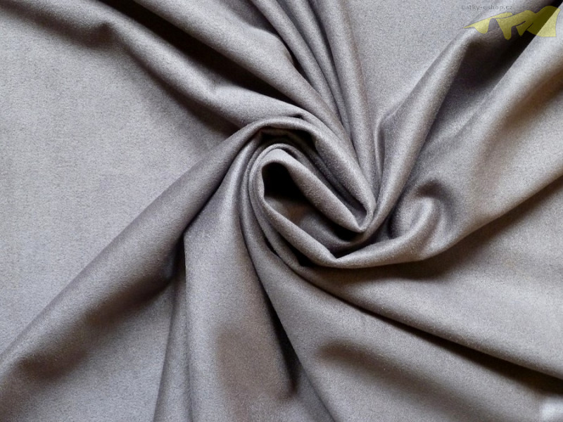 šedomodrý elastický semiš. Semiš je vhodný na sukně, šaty, kalhoty, legíny, saka a vesty. Tato semišová látka je pružná, příjemná na omak, vhodná ke každodennímu nošení.