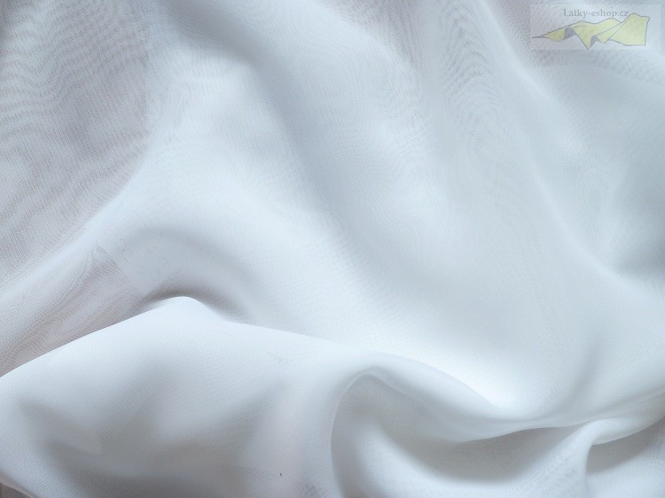 bílý šifon je průsvitná látka s velmi jemnou strukturou. Šifon se používá na halenky, šaty, tuniky, sukně apod. Tuto látku lze použít i k dekoračním účelům na závěsy, záclony apod.