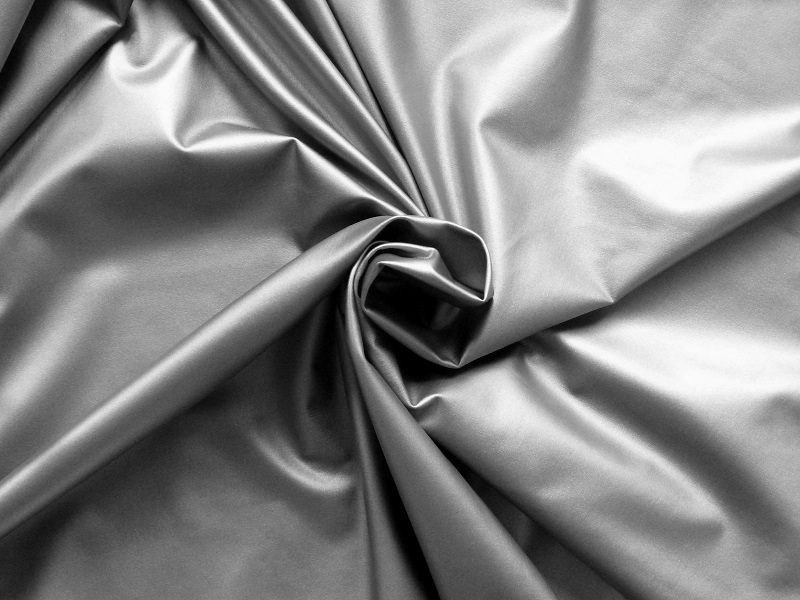 tato stříbrná plavkovina má vysoký obsah spandexu a vysoký lesk. z rubové strany je černá . je vhodná na kostýmy pro taneční skupiny, fitness plavky apod.