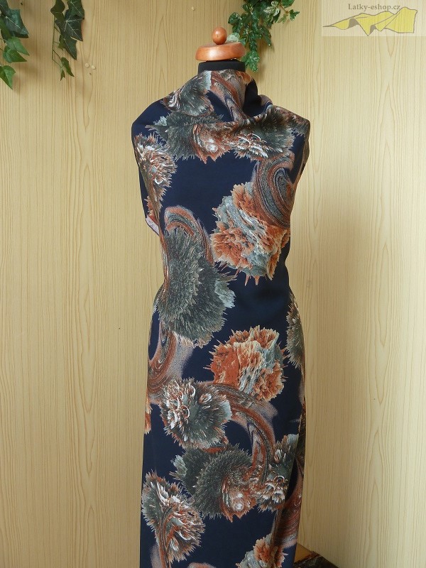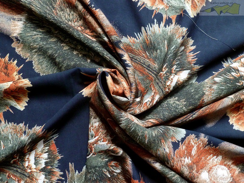 tmavě modrá viskóza 2050 hnědý květovaný vzor