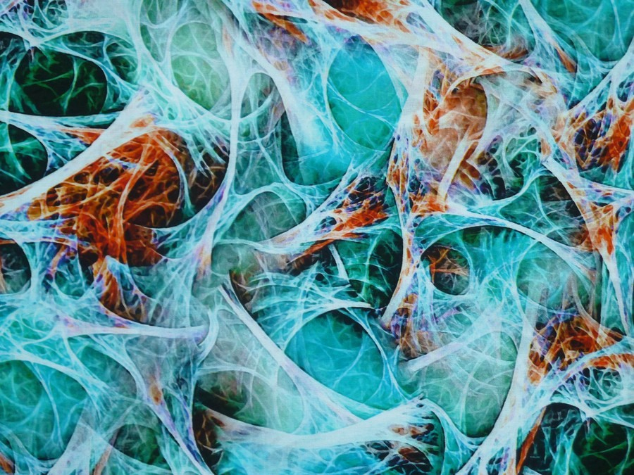 Tato viskozová látka není jen obyčejný potisk, je to umělecké dílo. Díky pokročilé technologii 5D tisku získává vzor neuvěřitelnou hloubku a plasticitu. Design připomíná organické struktury, propletená nervová vlákna nebo snovou ledovou krajinu v kombinaci s ohnivými akcenty.
