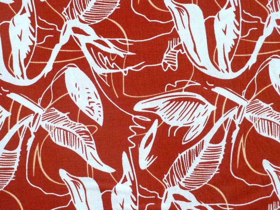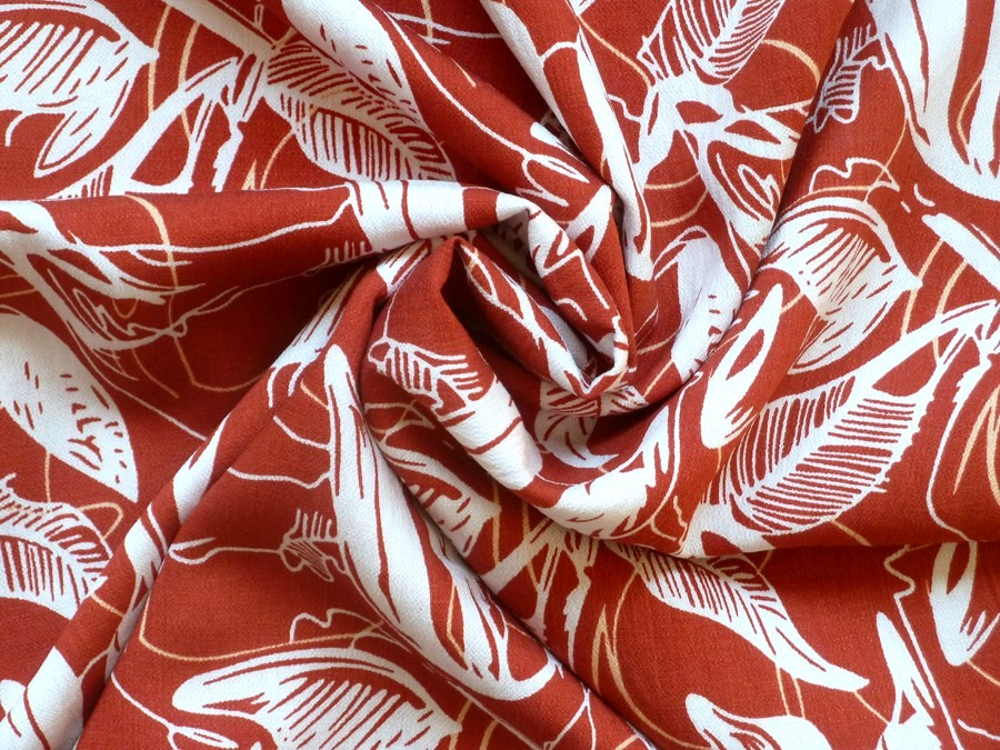 viskóza 3424 v cihlové barvě s botanickým vzorem