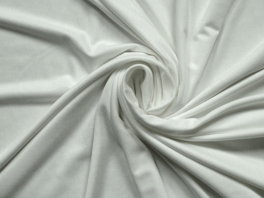 Tento viskózový úplet v barvě slonová kost s příměsí spandexu je definicí lehkosti a elegance. Díky vysokému podílu viskózy je látka přirozeně chladivá, prodyšná a má nádherný, jemně hedvábný lesk. Látka je krásně poddajná, pružná v obou směrech, netvoří tuhé záhyby a elegantně kopíruje postavu.Je vhodná na šaty, sukně, zavinovací topy, lehké kardigany, pyžama nebo dětské oblečení.