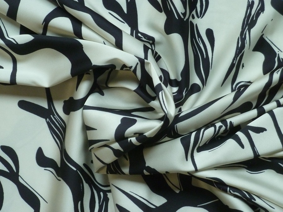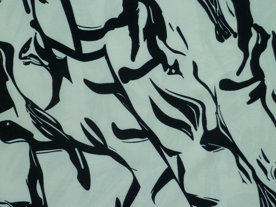 Toto zelenkavé acetátového hedvábí tvoří osvěžující odstín, na kterém jsou vykresleny černé organické linie.